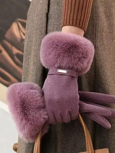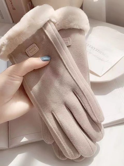 Winter Women Keep Warm Plus Velvet Touch Screen Thicken Plush Wrist Suede Gloves Fashion Personality Elegant Drive Cycling