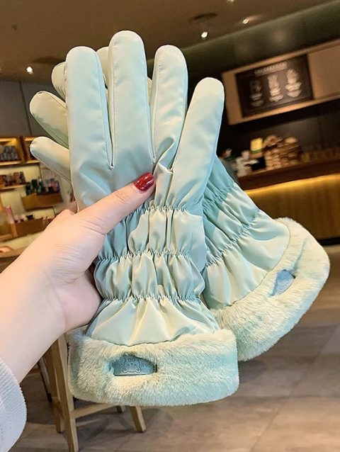 Ski Gloves Women Winter Fleece Thickened Warm Plush Cotton Waterproof Touch-Screen Gloves For Outdoor Riding Mountaineering