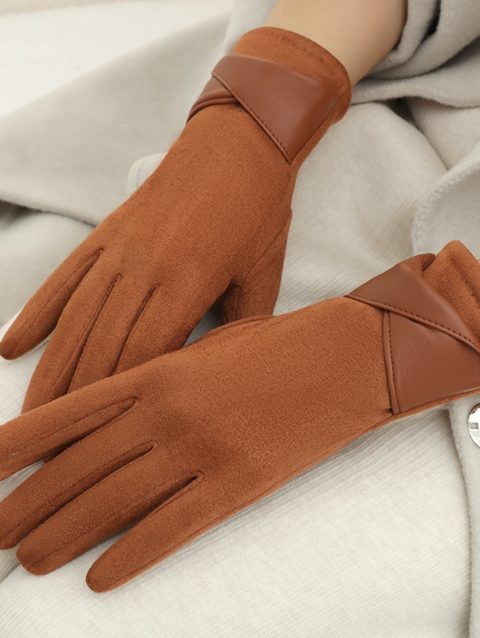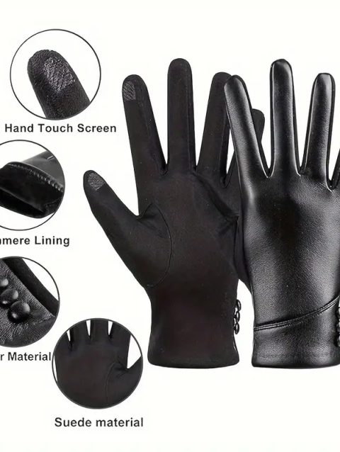 1 Pair of Gloves for Women in Winter Fleece-Lined to Heattech and Touch Screen Pu Elegant and Exquisite Cycling and Driving Gloves