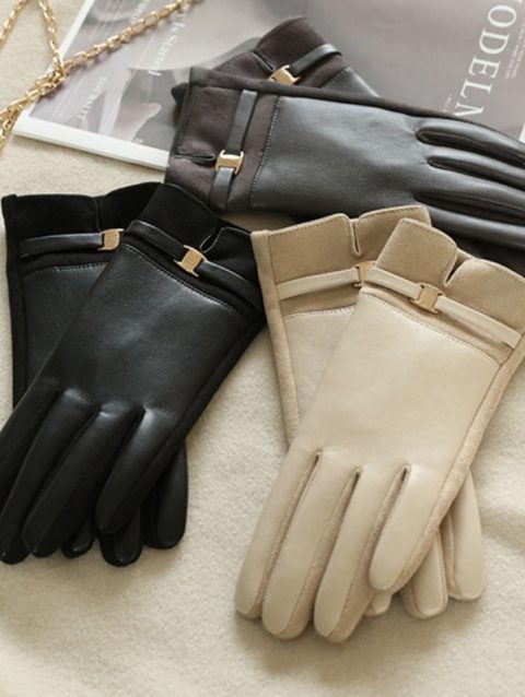 Women Winter Suede Leather Keep Warm Touch Screen Fashion Elegant Gloves Business Style Lightly Waterproof Metal Buckle