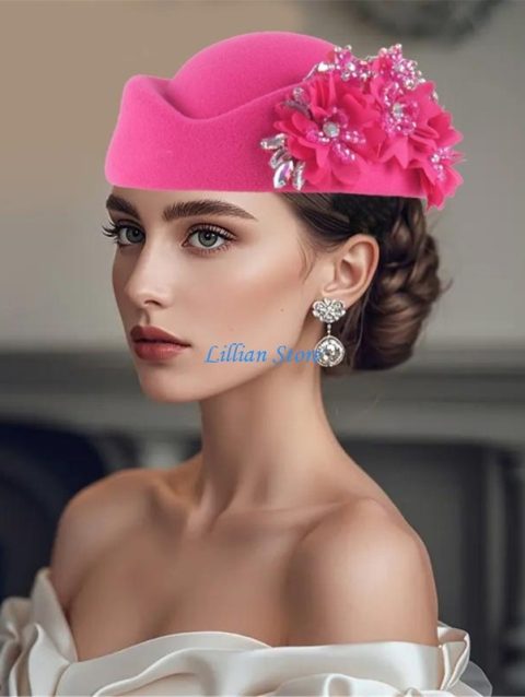 Q1FA Flower Design Hat for Teaparty Wool Stewardess Hat Church Bowler Hat for Formal Event 1920s Theme Party Headwear