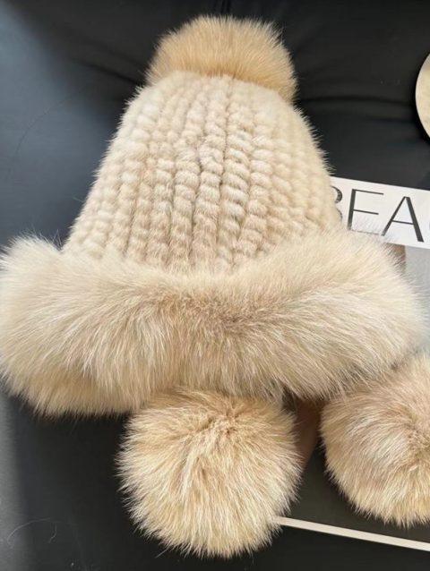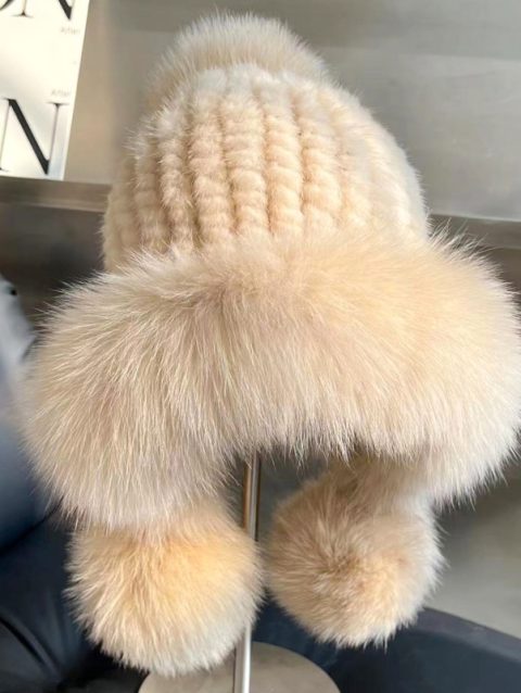 Real Mink Fur Hatfor Women Woven Fur Fisherman Hat With Fox Fur Ball Thickened Warm Ear Protection Hat Hand Beanies Bonnets Cap