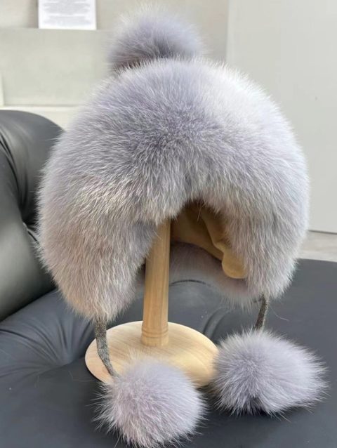 Real Fox Fur Hat Women Winter Snow Cap With Fur Ball Outdoor Skiing Hat Luxury Natural Fur Knitted Caps With Ear Protection
