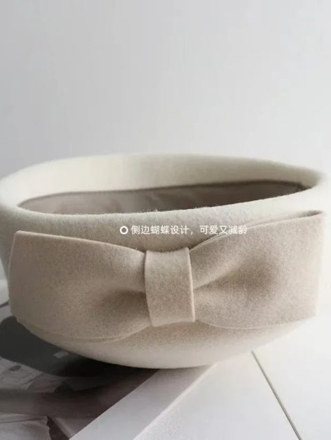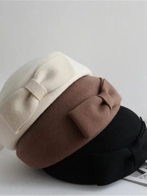 Women’s Wool Beret Hat with Bow | Winter Fascinator for Weddings & Church