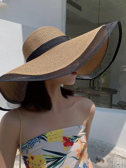 Women Sun Hat Big Eaves Waves Beach Cap Ladies Hat Big Brim Sun Visors UV Cut Bucket Panama Cap Foldable Straw Sunscreen Vintage