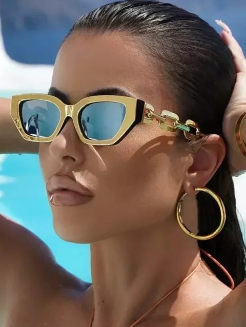 Fashion Small Cat Eye Sunglasses Women Trending Product 2024 Luxury Brand Cateye Chain Leg Sun Glasses Ladies Black Shades UV400