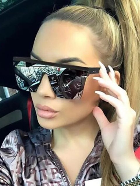 New Large-frame One-piece Sunglasses, European And American Fashionable Square Frame Sunglasses For Women, Colorful Glasses
