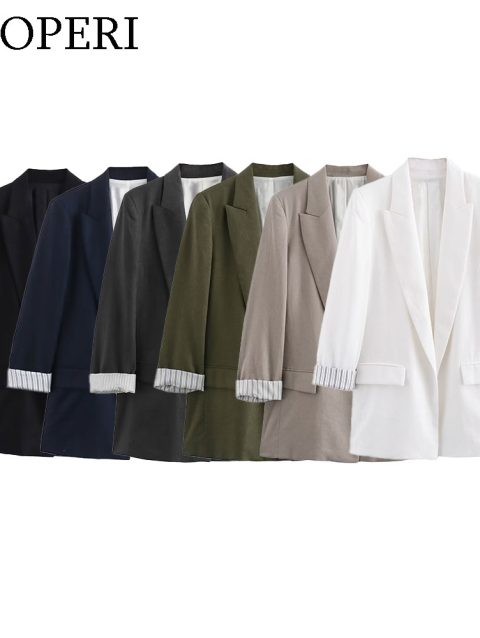 DUOPERI Women Fashion Solid Blazer Notched Collar Long Roll up Sleeves Female Chic Office Lady Business Outfits