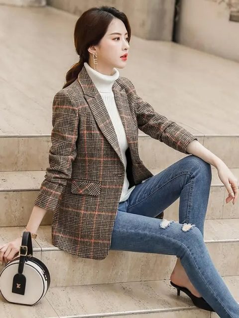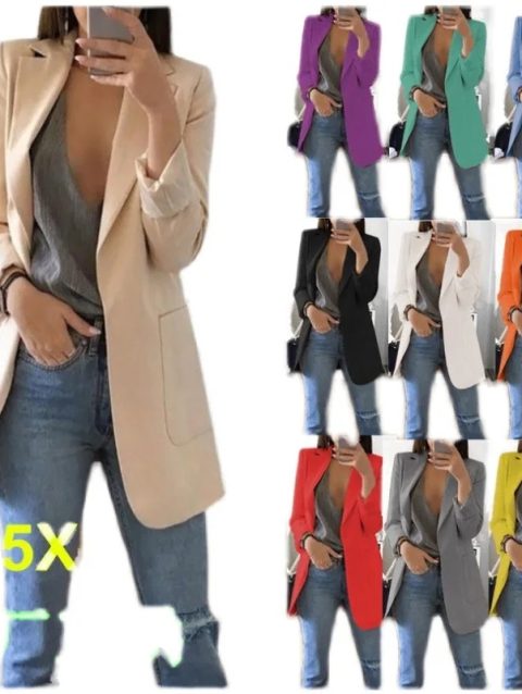 Casual Long Sleeve Suit Blazer Office Lady Spring Autumn Fashion Elegant Solid Outerwear Jacket For Women 2024 Female Coat