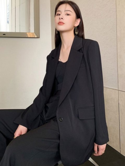 Casual Long Sleeve Suit Jacket Blazer Office Lady Spring Autumn Fashion Elegant Solid Blazer Outerwear Coat For Women 2023 Black
