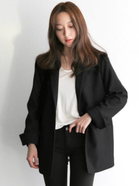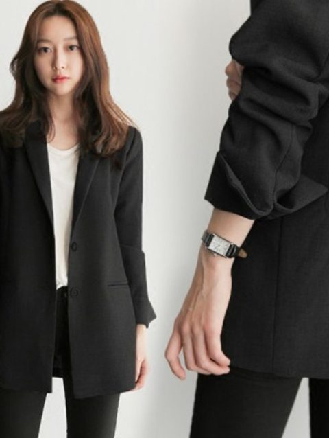 Office Lady Slim Blazer for Women, Long Sleeve Coats, Black Jackets, Casual Outerwear, Fall, Winter Fashion, 2023