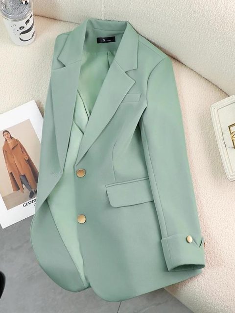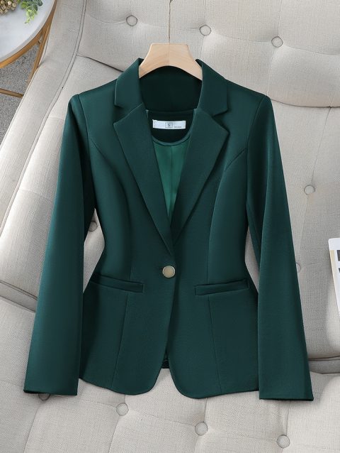 Office Ladies Blazer Women Jacket Apricot Green Black Long Sleeve Single Button Female Business Work Wear Slim Formal Coat