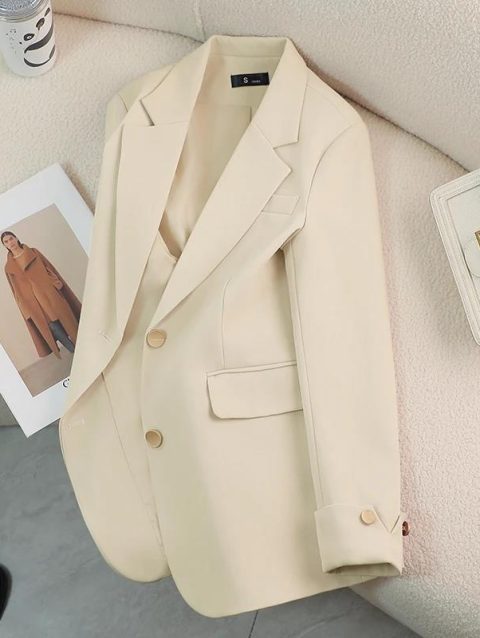 New Women’s Fashion Solid Button Suit Coat Lapel Long Sleeve Hatless Casual Coat/Jacket Oversized Office Lady Commute Clothes