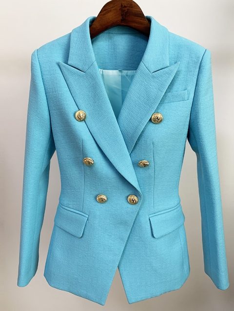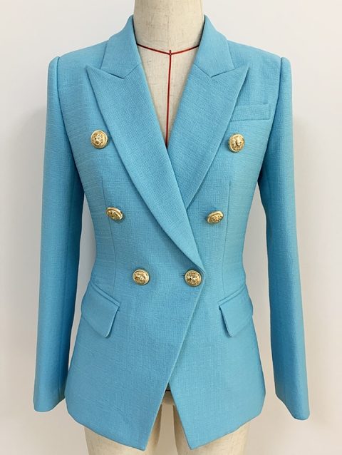 HIGH STREET Newest 2024 Runway Designer Blazer Women’s Classic Lion Buttons Double Breasted Slim Fitting Textured Blazer Jacket