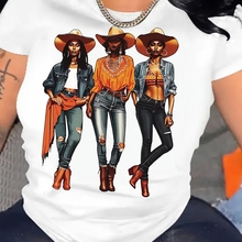 Cowgirl Print T-shirt Short Sleeve Crew Neck Casual Top For Summer Women’s Clothing harajuku tshirt girl streetwear clothing