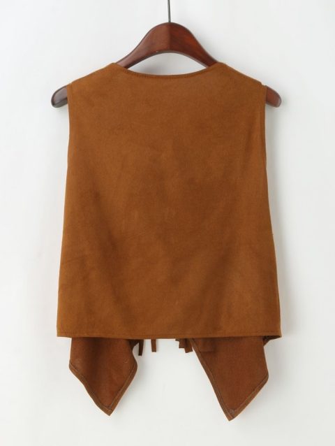 Women Faux Suede Ethnic Sleeveless For Jacket Rivet Fringe Tassels Hippie Open Front Cardigan Vintage Cowgirl Waistcoat Vest