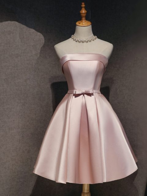 Cute Short Cocktail Dress A Line Bow on Straps Organza Customized Pink Strapless Mini Graduation Prom Dresses Vestidos De Gala