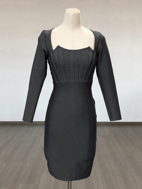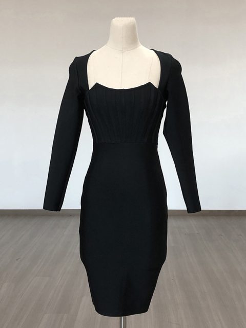 Black Grey Rayon Bandage Dress for Women 2023 New Long Sleeve Cocktail Party Dress Elegant Bodycon Vestidos High Quality BA186