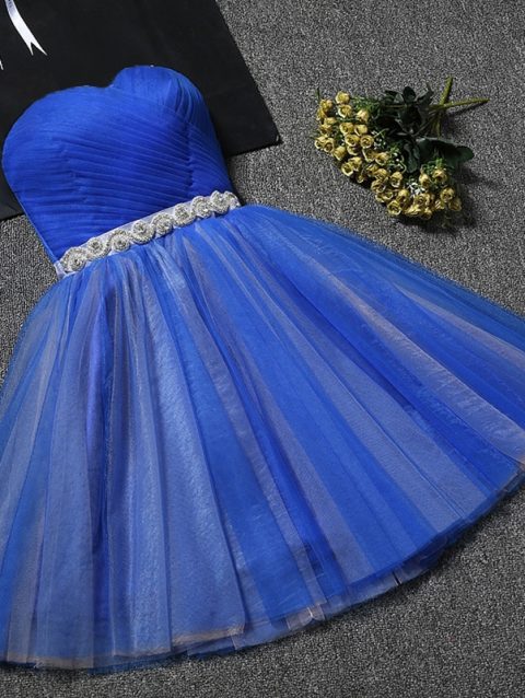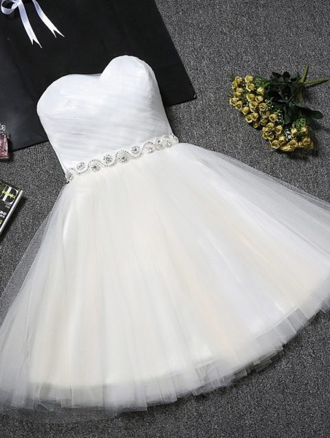 Vestidos De Fiesta Sweetheart Mini Homecoming Dresses Lace Up Back A Line Tulle Short Prom Party Cocktail Gowns With Beaded Belt