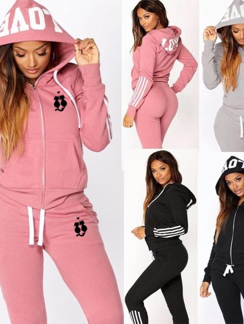 Autumn New Cat Print Women Comfortable Casual Tracksuits 2 Piece Sports Outfits Long Sleeve Tops and Slim Fit Long Pants Suit