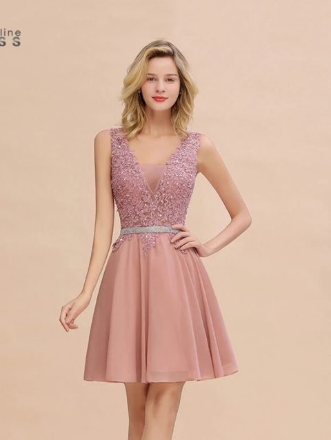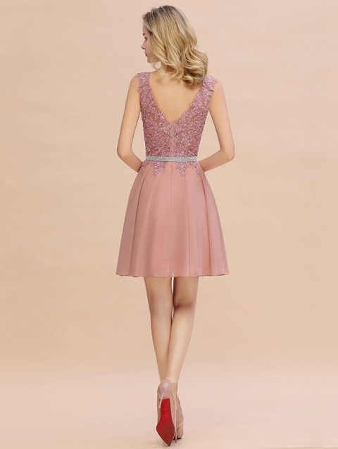 Newest Dusty Pink Sequins Lace Cocktail Dresses With Sashes Sexy V neck A Line Chiffon Short Party Gowns For Prom Evening 2025