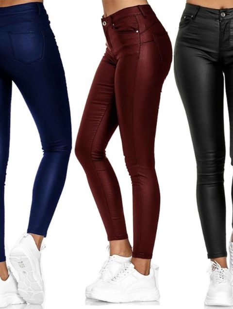 2024 Spring Autumn New Women’s Clothing High Waist Pure Color Leather PU Leather Pants