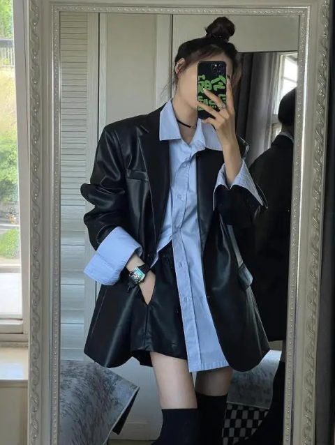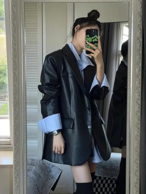 2024 New Style Women’s Genuine Leather Jacket Loose Fit Casual Elegant High-End Feel Top Korean Vintage Black Jacket
