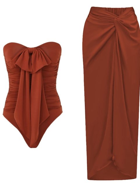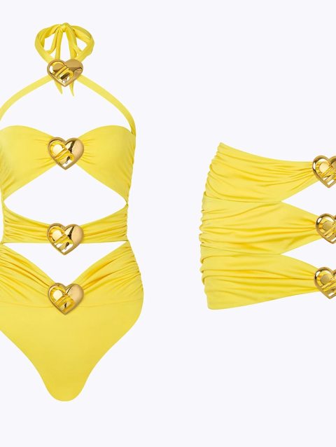 2024 Sexy Heart Cut out One Piece Swimsuit and Skirt Swimwear Women Bodysuit Monokini High Leg Swim Suit Bathing Suit Beachwear