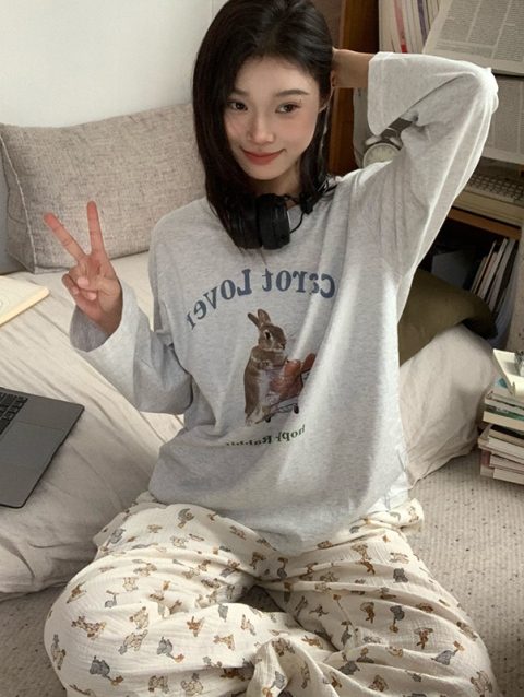 Spring and Autumn New Ladies Ins Style Pajamas Homewear Set Girls Students Korean Sweet Pajamas Loose Pajamas Homewear Set