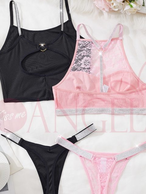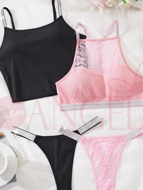 Women Bling Pajamas Camisole Hollow Out Top g-string Sleepwear Set For Women Pijama Mujer Sexy Homewear Suspender Lace Slim Suit