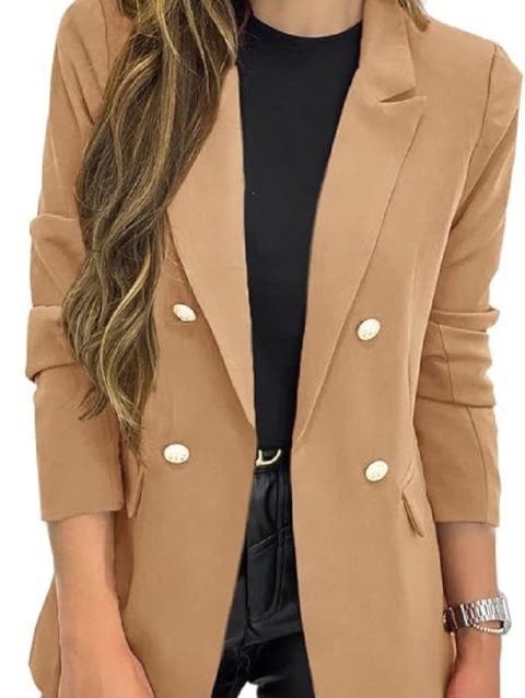 Women’s Classic Buttons Slim Fitting Blazer Jacket Solid Color Casual Long Sleeve Lapel Blazer Female Work Office Outerwear