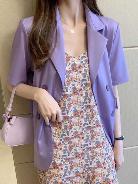 Women’s Clothing Summer Thin Solid Color Loose Office Lady Formal Blazers Notched Straight Comfortable Button Pockets Simplicity
