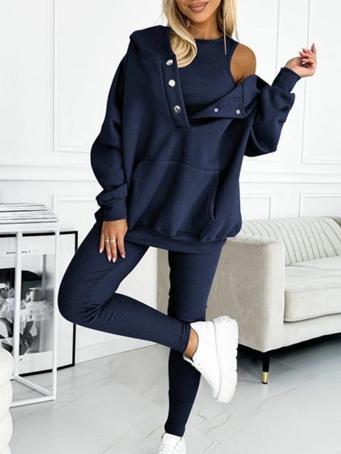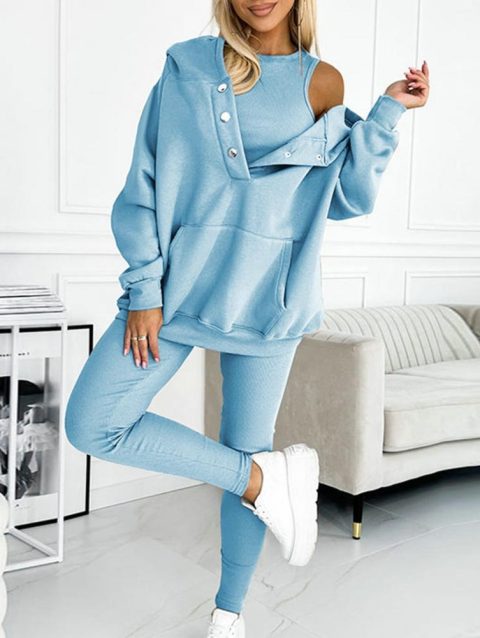 Women’s 3 Piece Set Casual Tracksuit Autumn Winter Sport Suit Hoodies+Vest+Pants Warm Sporting Women Set Outwear Suit
