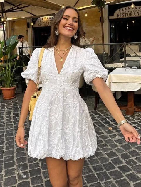 Women’s 2025 New Embroidered Dresses Summer Fashion Slim V-neck Elegant Vacation Mini Women’s Dress Youth Street Party Dress