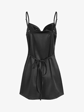Women’s Sexy Satin Dress Spaghetti Strap Slip Nightwear Side Slit Cocktail Party Dress Silky Solid Asymmetric Mini Dresses 2024