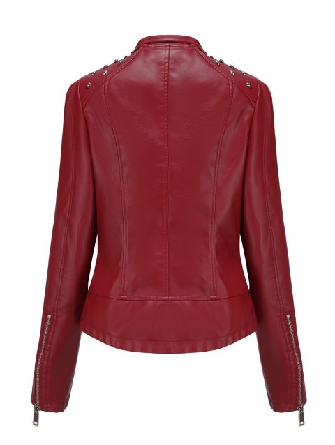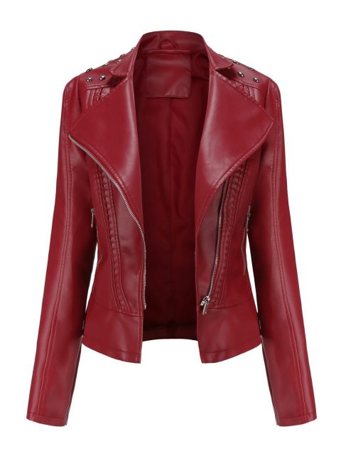 Women’s Punk Rivet Leather Jacket Spring Autumn Retro Turndown Collar Slim Casual Ladies Faux Soft Leather Moto Biker Outerwear