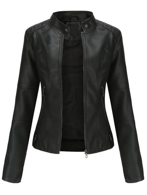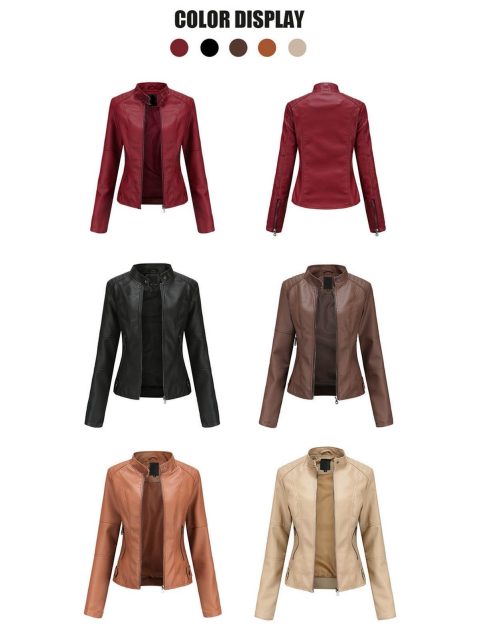 Women’s Solid Color Pu Leather Jackets Slim Fit Zipper Leather Bomber Coat Turtleneck Women’s Motorcycle Leather Jackets куртка