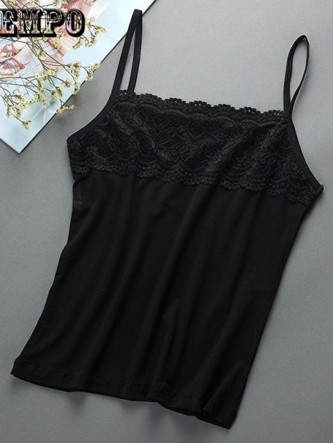 Women’s Slim Fit Large Top with Strap Tank Top Spring and Summer Lace Underlay Black and White