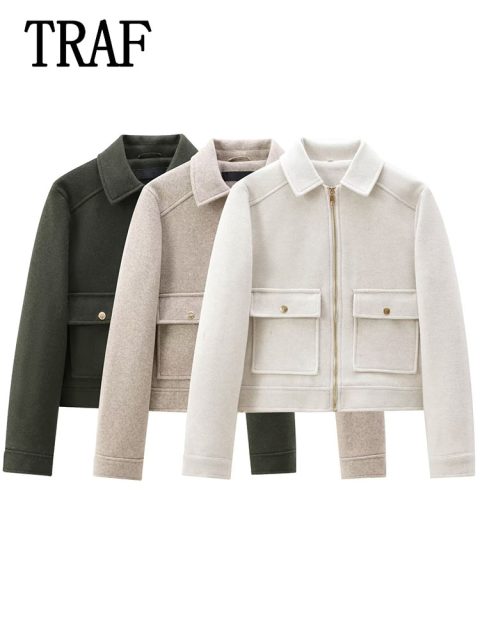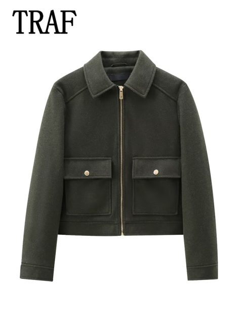 Women’s Zipper Jacket Coat New Winter Long Sleeve Pocket Outerwear Coat Short Street Elegant Women’s Jacket