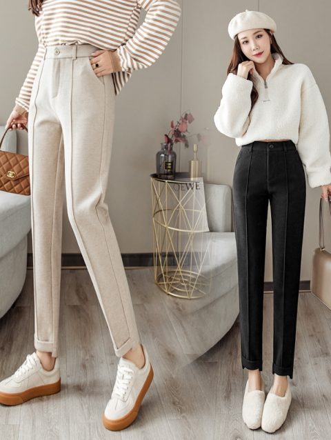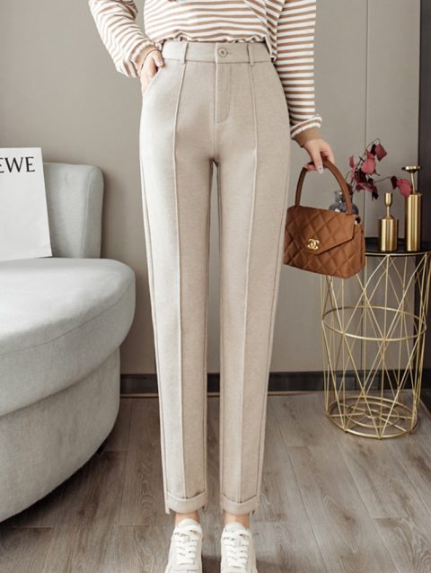 Woolen Pants Women’s Harem Pencil Pants 2024 Autumn Winter High Waist Casual Suit Pants Office Lady Women Trousers Hot Sale
