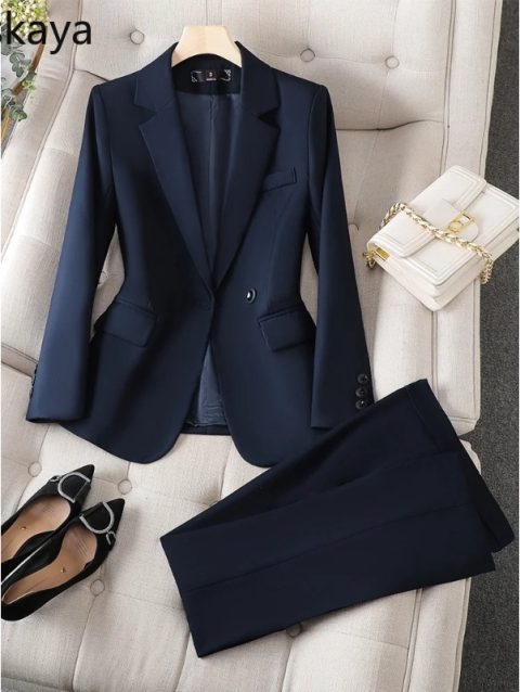Work Wear Blazer Jacket And Trouser Female 2 Piece Set Gray Black Women Pant Suit Formal Office Ladies Business