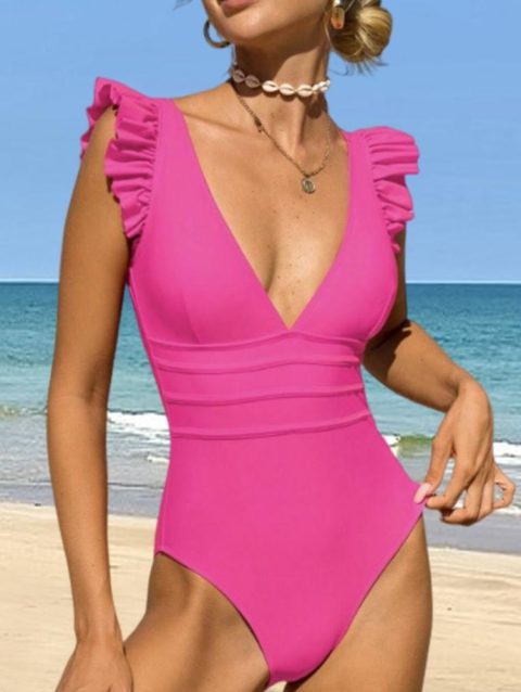 Womens One Piece Rashguard Surfing Sport Swimsuit Ruffle Sleeve Swimwear Bodysuit