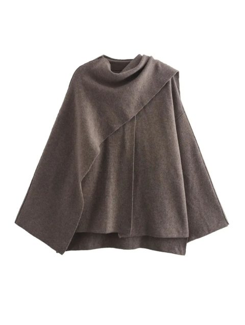 XNWMNZ Women’s Fashion 2024 Autumn/Winter Asymmetric Scarf Knitted Coat Women High Street Long Sleeve Versatile Female Overcoat