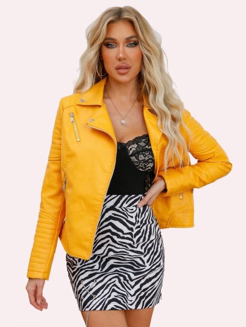 YJKDYK 2025 Spring Autumn Women’s Motorcycle Uniform Female Slim Fit Collar Slanted Zipper Leather Jacket Women Cool Coats
