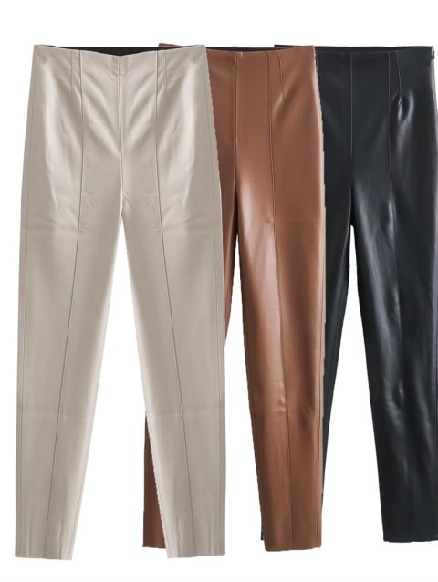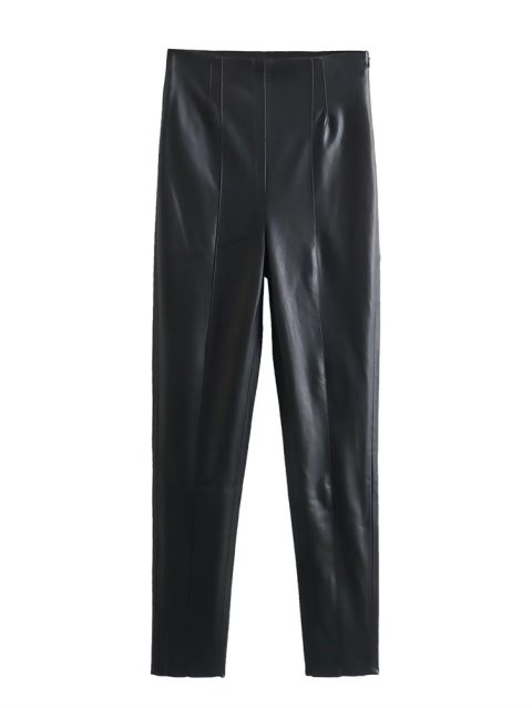 Zach Ailsa 2024 Spring New Product Women’s Fashion and Temperament Solid Color Imitation Leather Bottom Pants