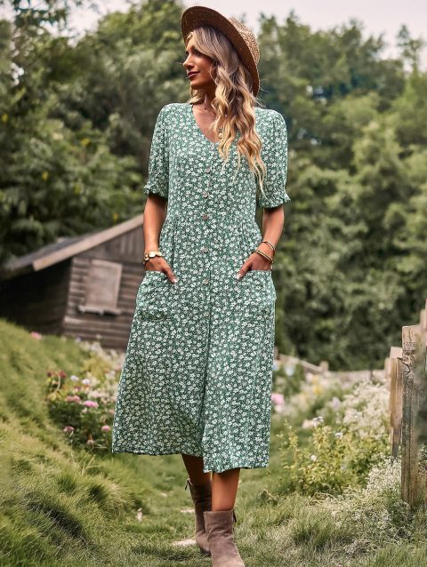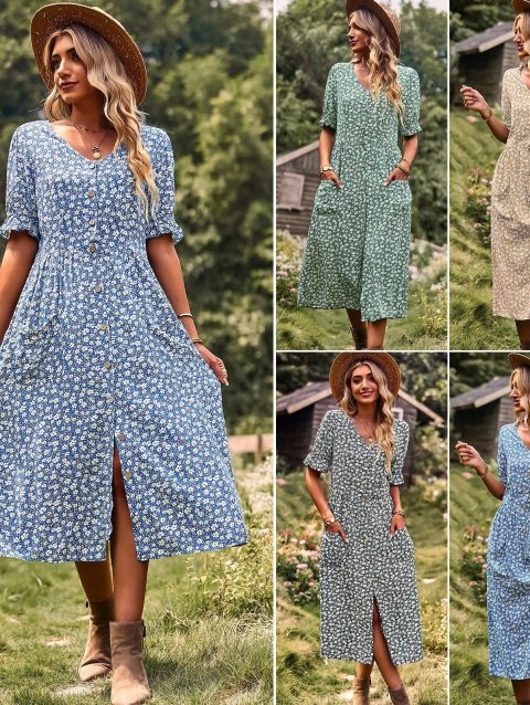 YJKDYK 2025 Summer Women’s Dress Female Printed Vent A-line Dress Lady Dress Vacation Women’s Summer Clothing Women’s Sun Dress