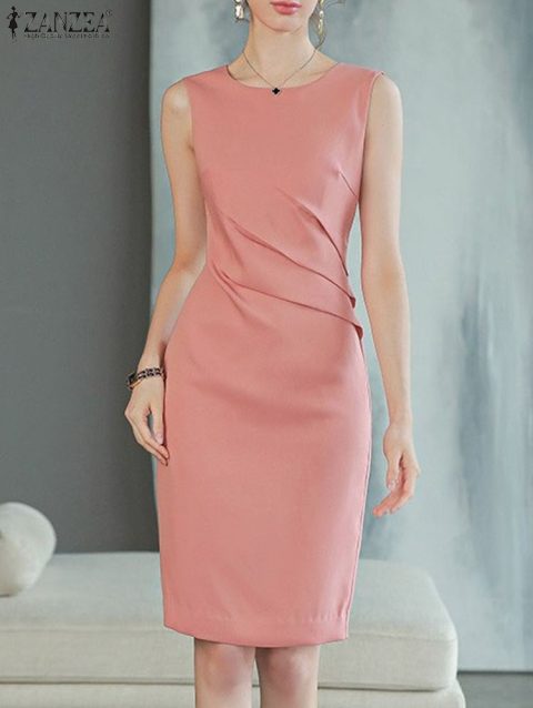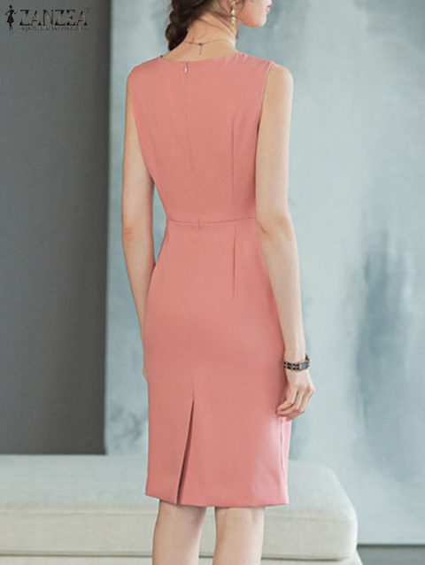 ZANZEA Elegant Women Sleeveless Slim OL Work Dress Casual Bodycon Vestido Robe Fashion Summer Solid Party Knee-length Sundress