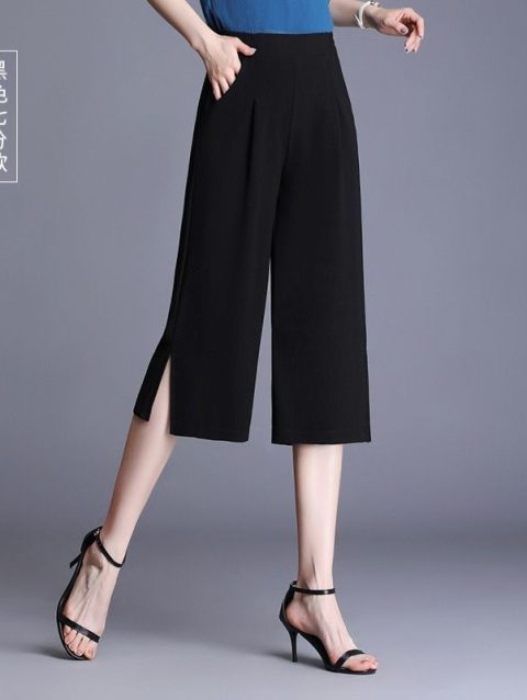 Women Summer Simplicity Loose Large Size Elegant Solid Color High Waist Wide Leg Ladies Casual Appear Thin Fashion Cropped Pants