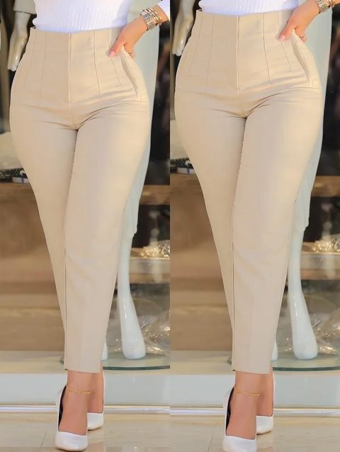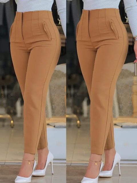 TRAFZA 2024 Woman Solid Trouser High Waist Slim Zipper Fly Long Pants Female Wild Commute Office Lady Woman Pencil Pant Street