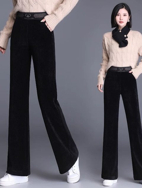 Women Winter Fleece Simplicity Office Lady Patchwork Solid Color High Waist Appear Thin Straight Ladies Casual All-match Harem